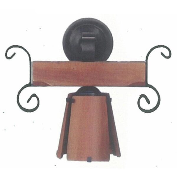 Aplique con 1 luz (E-27). Modelo listón de madera y caracoles de pletina, con carcaza de 3 tejas de 15. Pintado en negro (c-1).